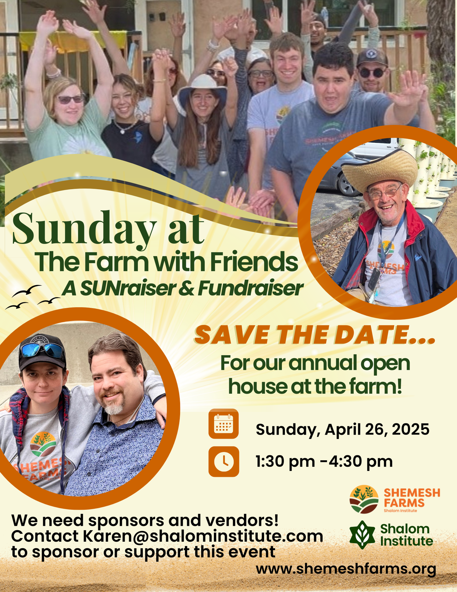 Support Shemesh Farms at our annual SUNraiser/Fundraiser and help us continue to provide meaningful employment, programming and community to adults with diverse abilities.